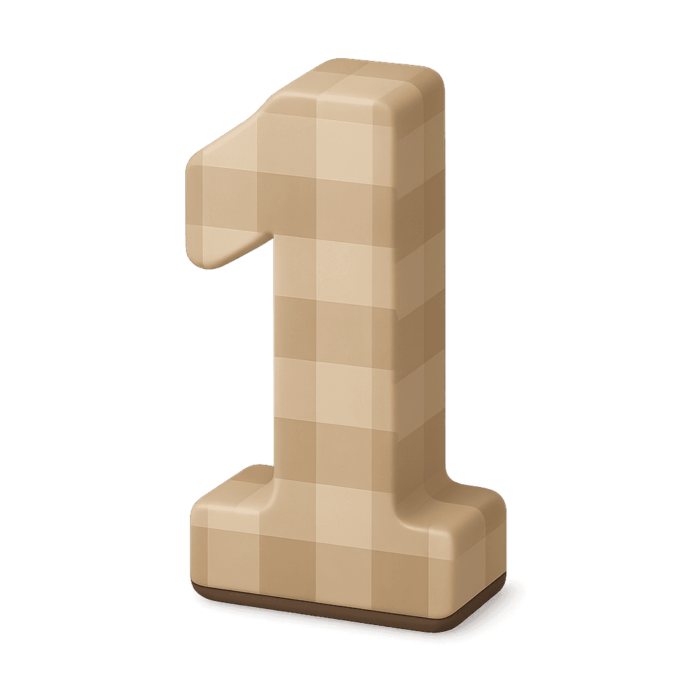 The numeral 'One' is a fundamental symbol used in interfaces and written language to represent the concept of singularity, unity, or the first in a sequence. It is widely recognized in digital and analog systems for selection, ranking, and identification.