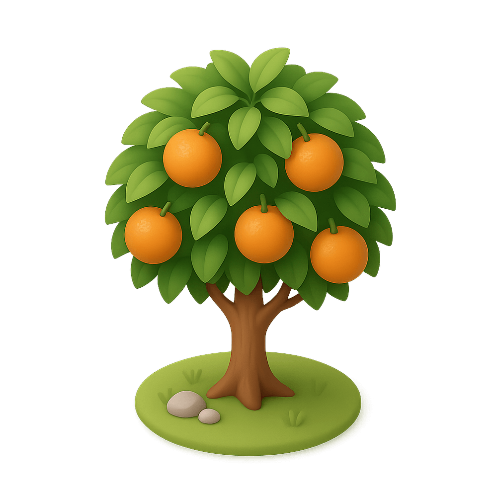 A fruit-bearing tree known for its sweet, juicy oranges. Commonly found in warm climates, orange trees are valued for their nutritious fruit and fragrant blossoms.