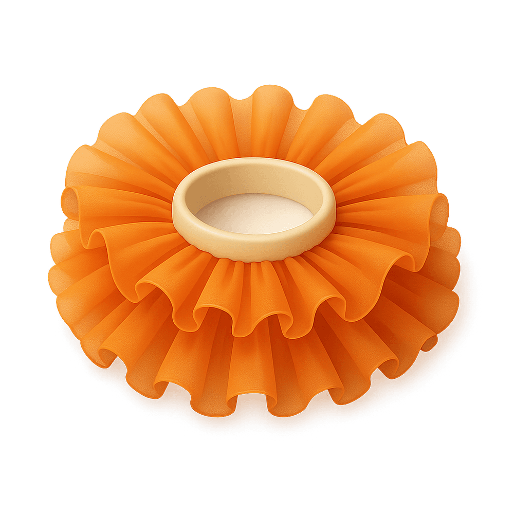 A vibrant orange tulle collar designed to add a dramatic and stylish flair to any outfit. Lightweight and voluminous, this accessory is perfect for fashion-forward looks, costumes, or special occasions.