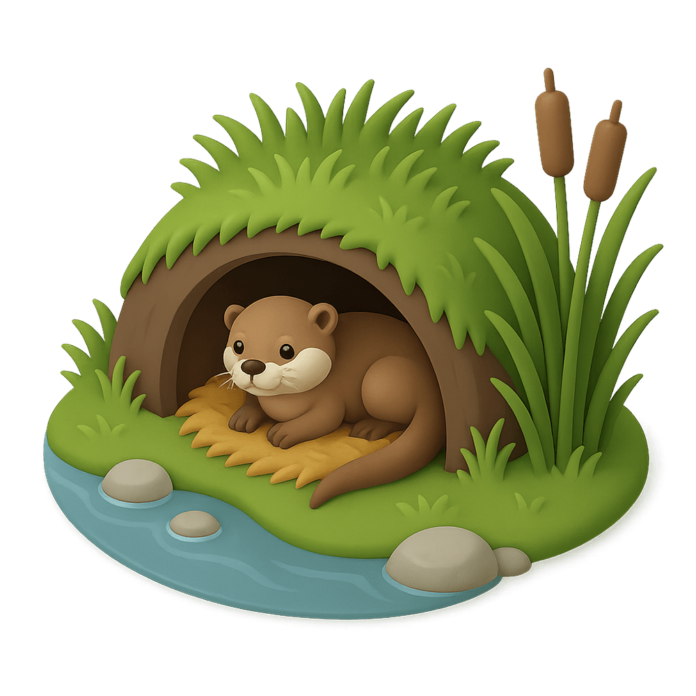 An otter holt is a natural or constructed den used by otters for shelter, raising young, and protection. Typically found along riverbanks or wetlands, holts are hidden burrows or cavities that provide a safe, dry space for these aquatic mammals.