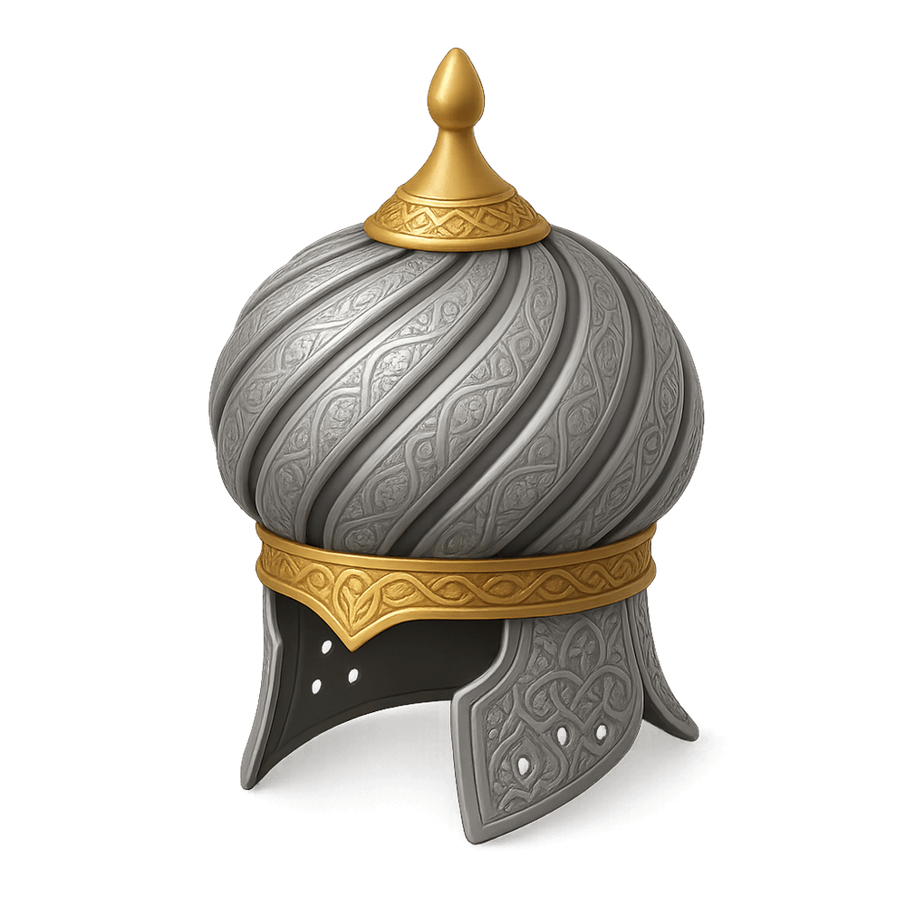 An Ottoman Turban Helmet is a distinctive type of combat headgear used by Ottoman warriors, especially in the 15th and 16th centuries. Characterized by its bulbous, turban-like shape and intricate metalwork, it served both as protection in battle and as a symbol of status and identity within the Ottoman Empire.