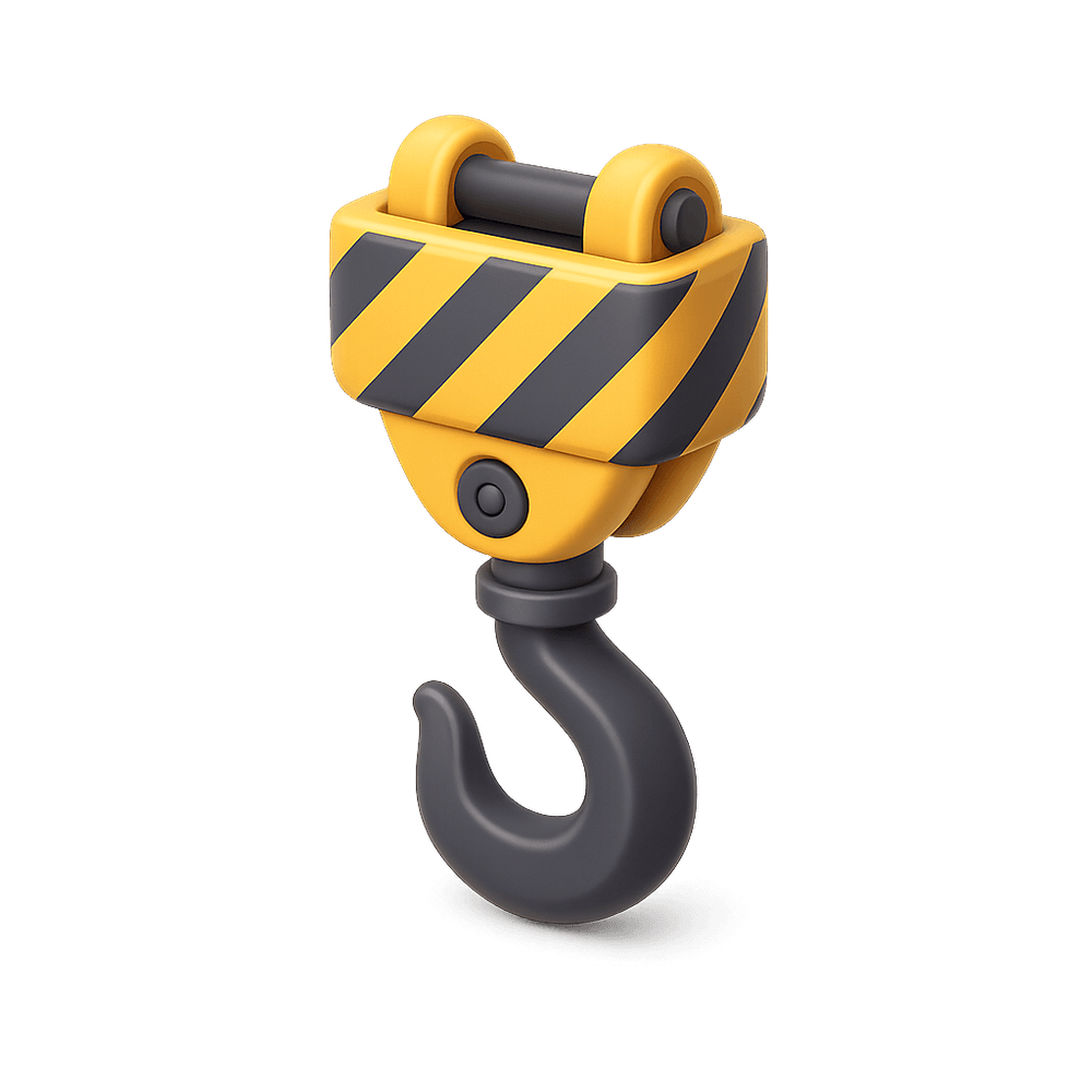 A heavy-duty hook designed to attach to overhead cranes for lifting and moving large loads in industrial and construction settings. Essential for material handling and safety in work environments.