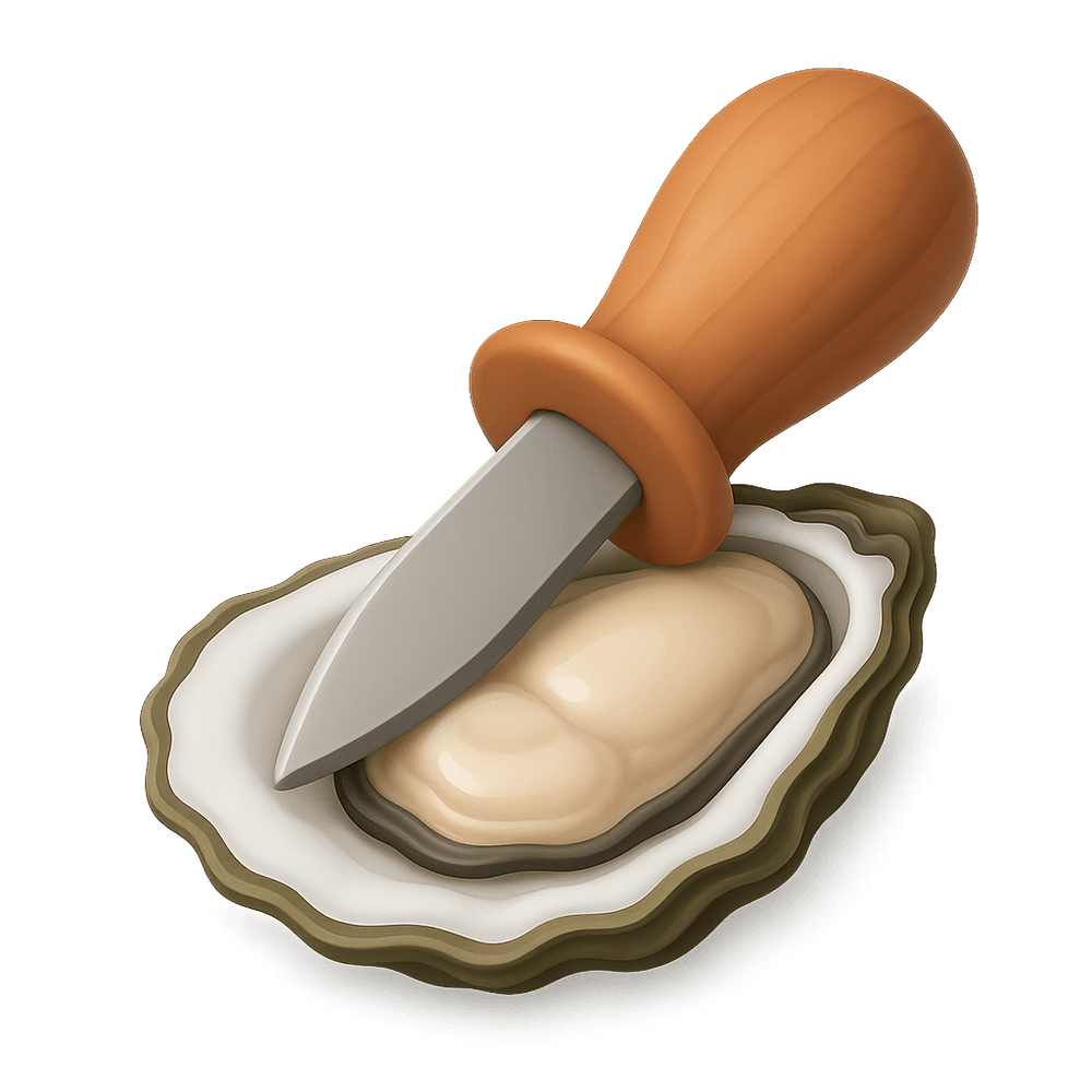 A specialized hand tool designed for safely opening oyster shells, commonly used in seafood preparation and the shellfish industry. Its sturdy blade and protective handle help prevent injury while shucking oysters efficiently.