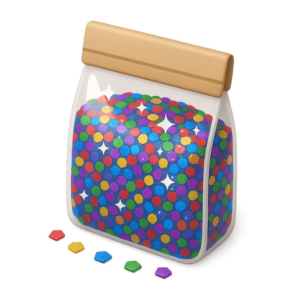 A small package containing colorful, reflective particles used for decoration, crafts, and celebrations. Glitter adds sparkle and visual interest to various everyday projects and events.