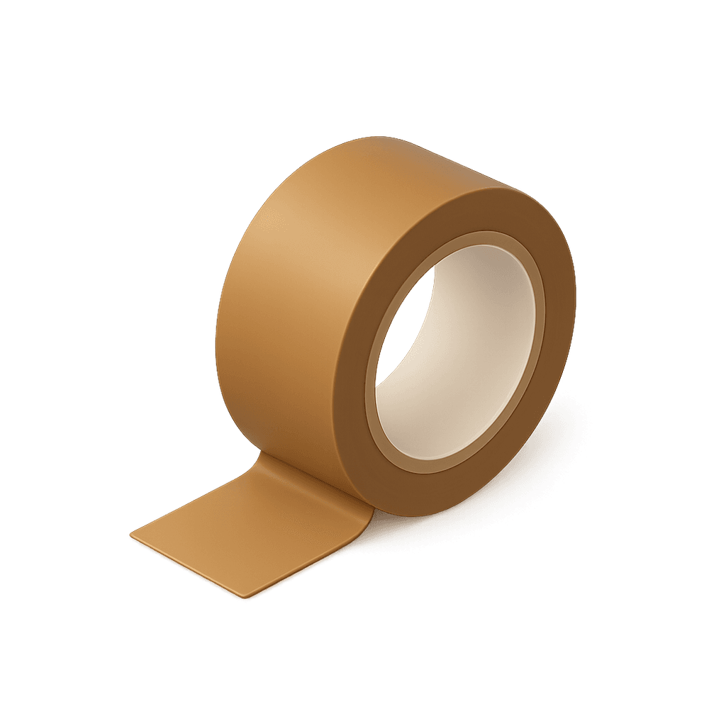 A strong, adhesive tape used for sealing boxes and packages, commonly utilized in shipping, moving, and storage tasks in industrial and workplace settings.