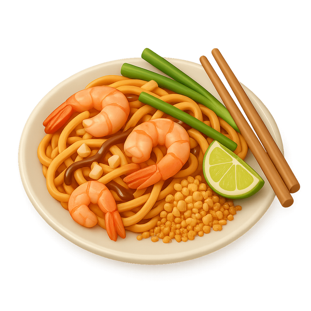 Pad Thai is a popular Thai stir-fried noodle dish made with rice noodles, eggs, tofu or shrimp, peanuts, bean sprouts, and a tangy tamarind-based sauce. It is a staple of Thai cuisine and known for its balance of sweet, sour, and savory flavors.