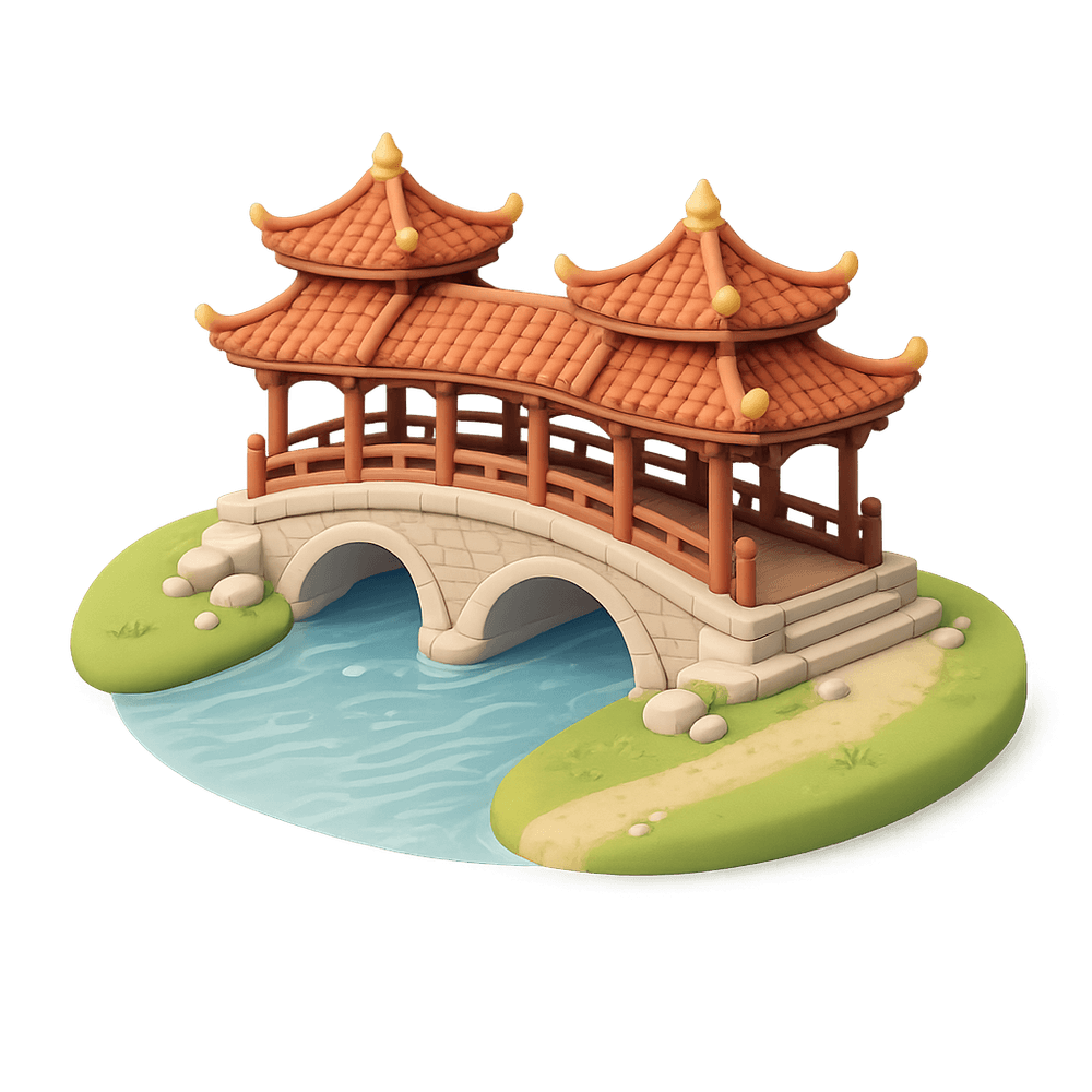 A Pagoda Bridge is a traditional covered bridge often found in East Asia, featuring ornate, pagoda-style roofs and intricate wooden architecture. These bridges serve both as pedestrian crossings and as cultural landmarks, blending functionality with artistic design.