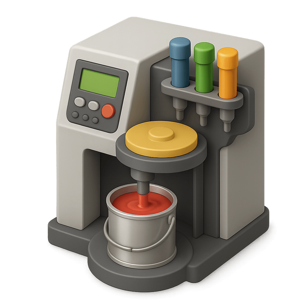 A paint mixing machine is an industrial device designed to blend different paint colors and components to achieve a uniform mixture. Commonly used in manufacturing, construction, and commercial painting, it ensures consistency and efficiency in large-scale paint production or application.