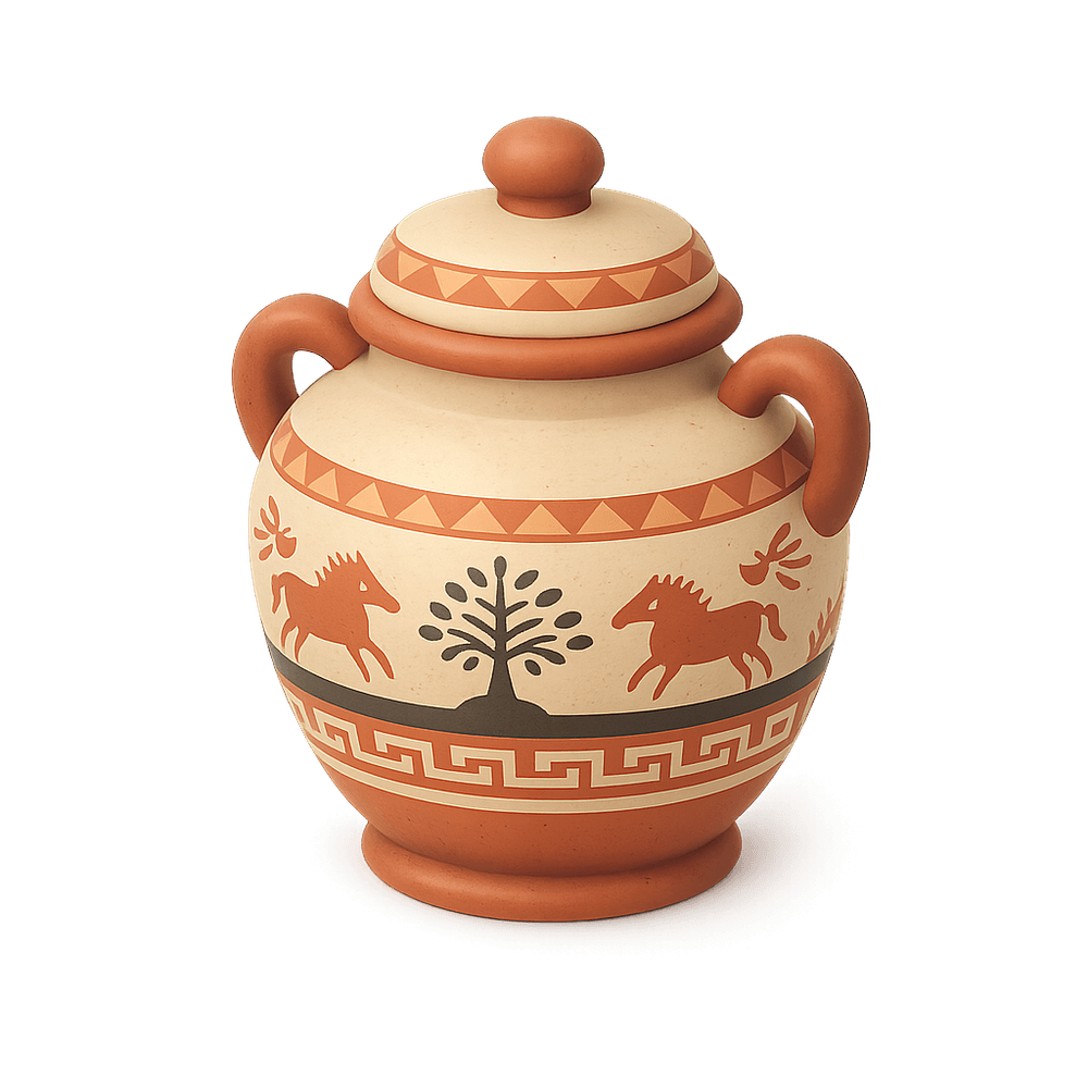 A painted funerary urn is a ceramic vessel used in ancient burial practices to hold the ashes or remains of the deceased. Often decorated with symbolic motifs, these urns provide insight into the rituals, beliefs, and artistic traditions of past cultures.