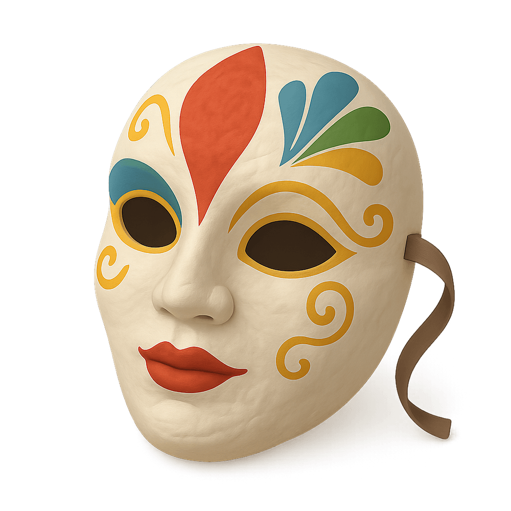 A papier-mâché mask is a decorative or wearable mask crafted by layering pieces of paper and adhesive, then painting or decorating it. Popular in arts and crafts, these masks are often used for costumes, festivals, or creative expression.