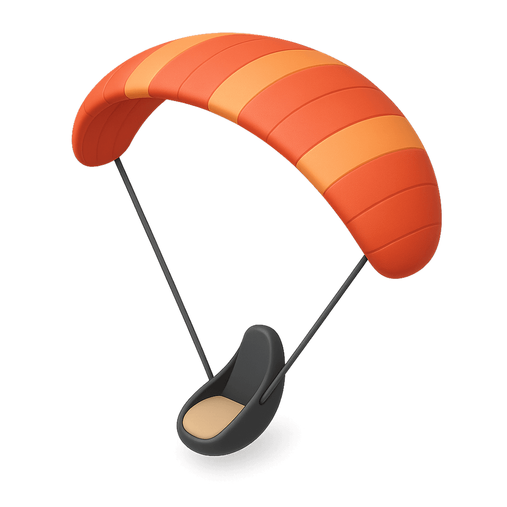 A paraglider is a lightweight, free-flying, foot-launched glider aircraft with no rigid primary structure, used for recreational and competitive flying sports. Pilots sit in a harness suspended below a fabric wing, controlling flight by shifting their weight and manipulating brake lines.