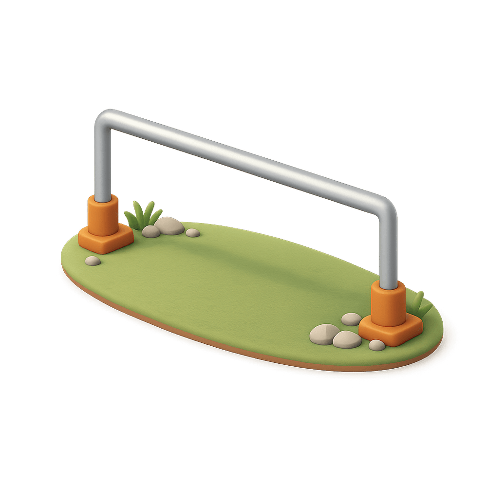 A parkour rail is a sturdy, horizontal or angled metal bar used in parkour and freerunning for practicing jumps, vaults, balance, and tricks. It serves as an obstacle for athletes to develop agility, strength, and coordination in urban or training environments.
