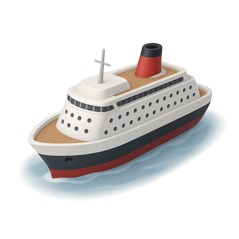 A large watercraft designed to transport people across bodies of water, such as oceans, seas, or rivers. Passenger ships include ferries, cruise ships, and ocean liners, and are essential for both travel and tourism.