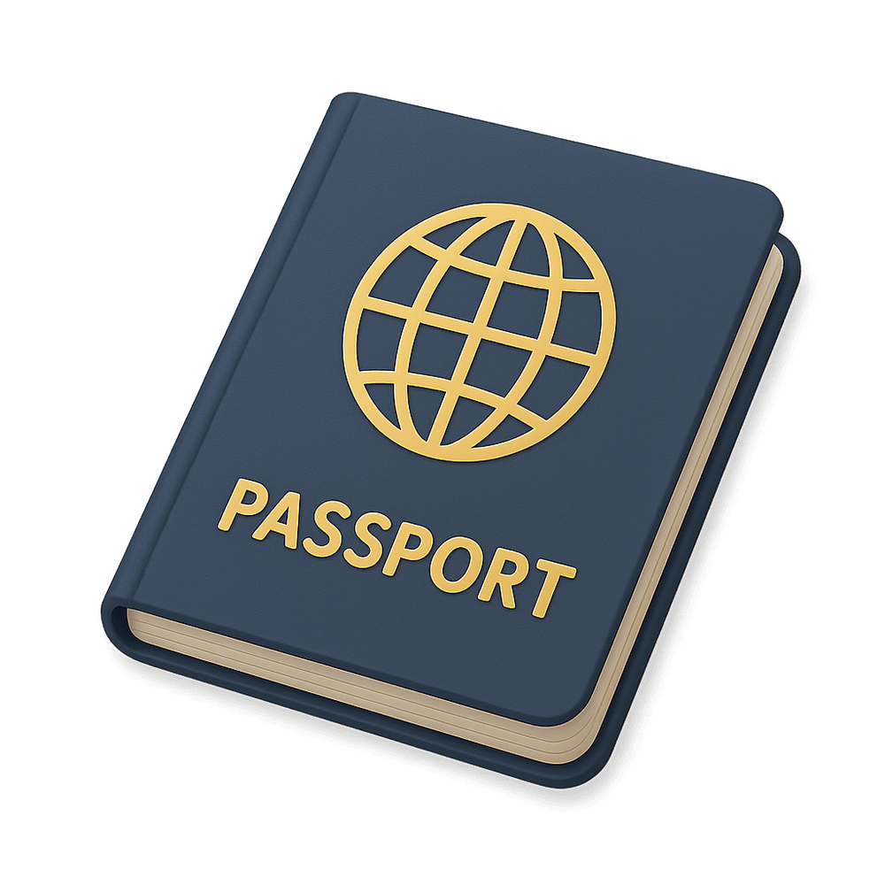 An official government-issued document that certifies a person's identity and citizenship, allowing them to travel internationally. Passports contain personal information, a photograph, and security features.