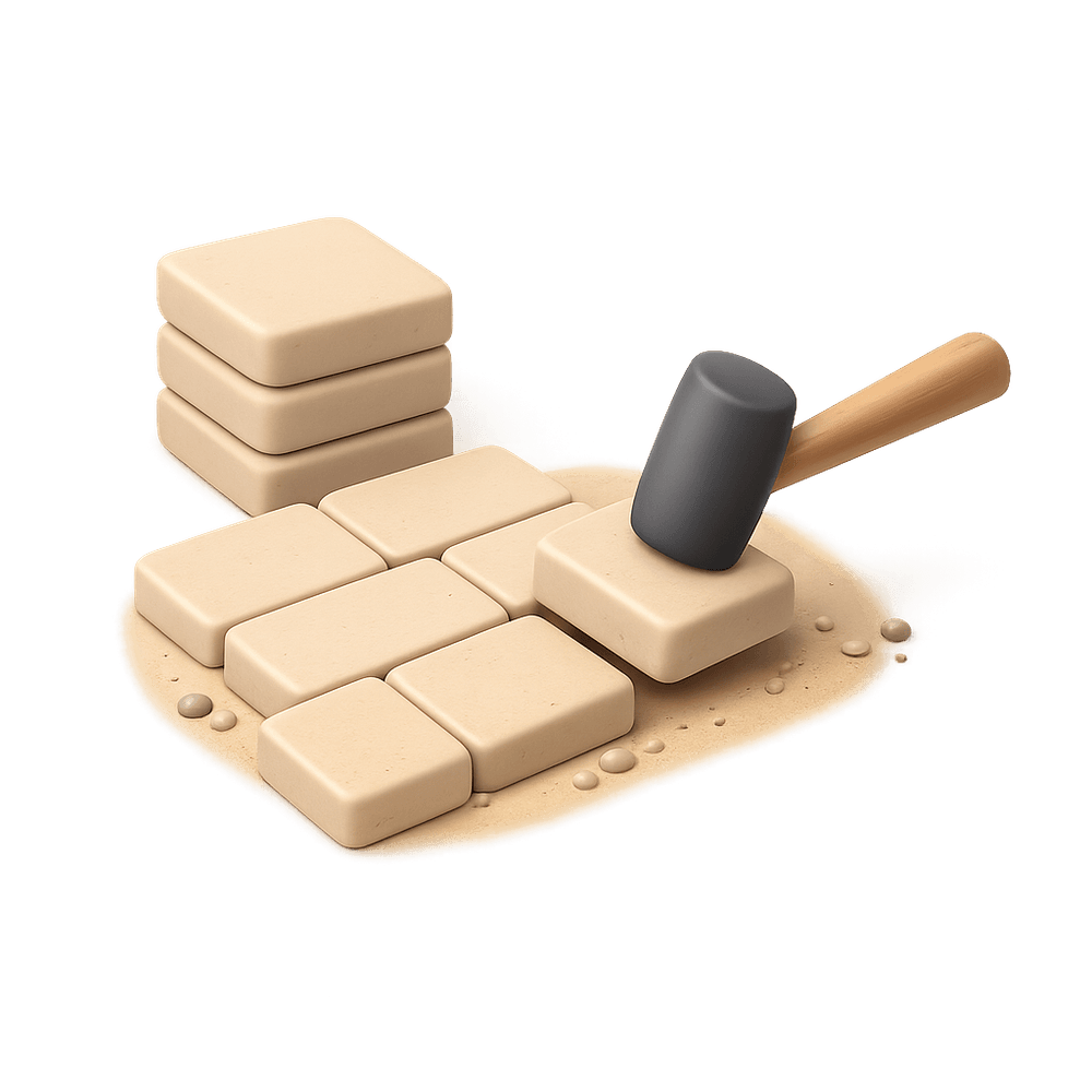 A paver is a flat stone or concrete block used to create durable surfaces for walkways, patios, driveways, and other outdoor spaces. Pavers are commonly used in landscaping and construction to form stable, visually appealing paths and surfaces.