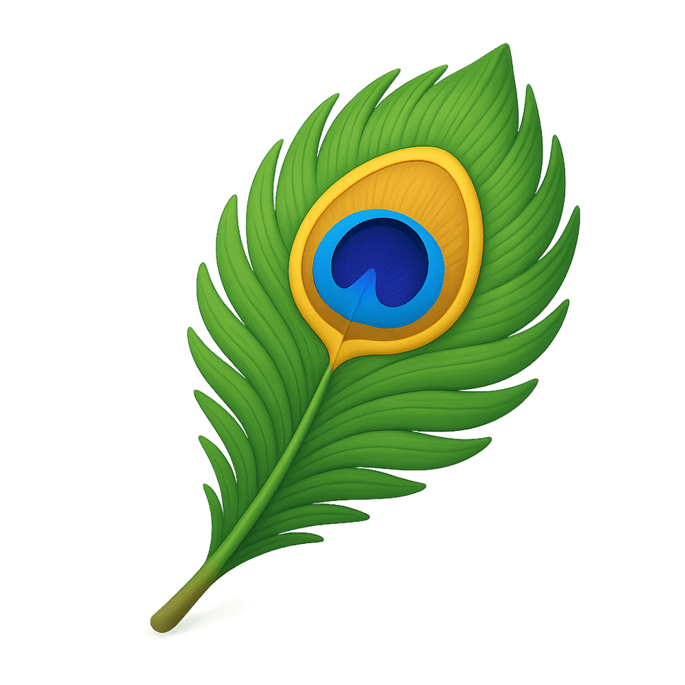 A vibrant, iridescent feather from the peacock, known for its striking eye-like pattern and use in decoration, art, and symbolism.
