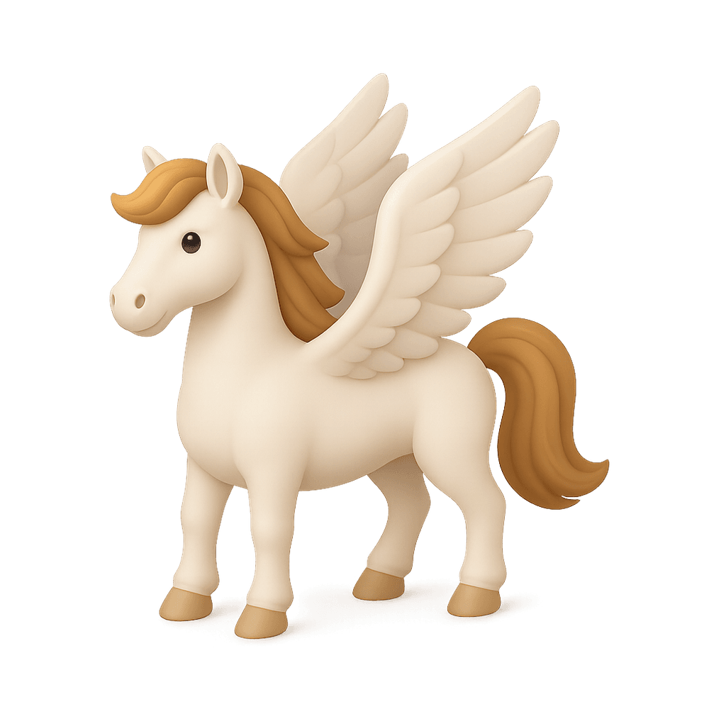 Pegasus is a legendary winged horse from Greek mythology, known for its ability to fly and its association with inspiration, heroism, and the gods. Often depicted as pure white, Pegasus symbolizes imagination and the magical possibilities of the fantastical world.