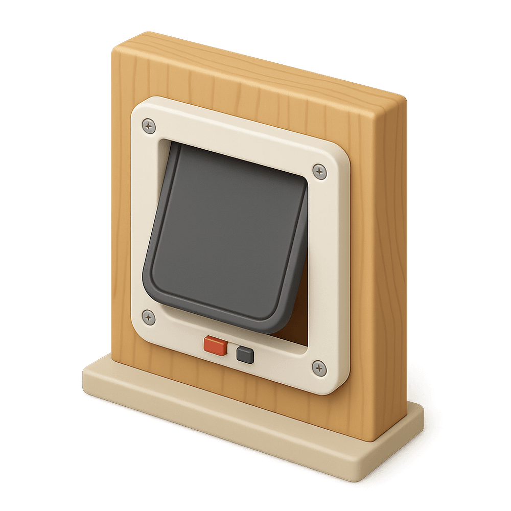 A pet door is a small, hinged or sliding opening installed in a door or wall, allowing pets such as cats or dogs to enter and exit a house independently. It provides convenience for pet owners and freedom for pets.