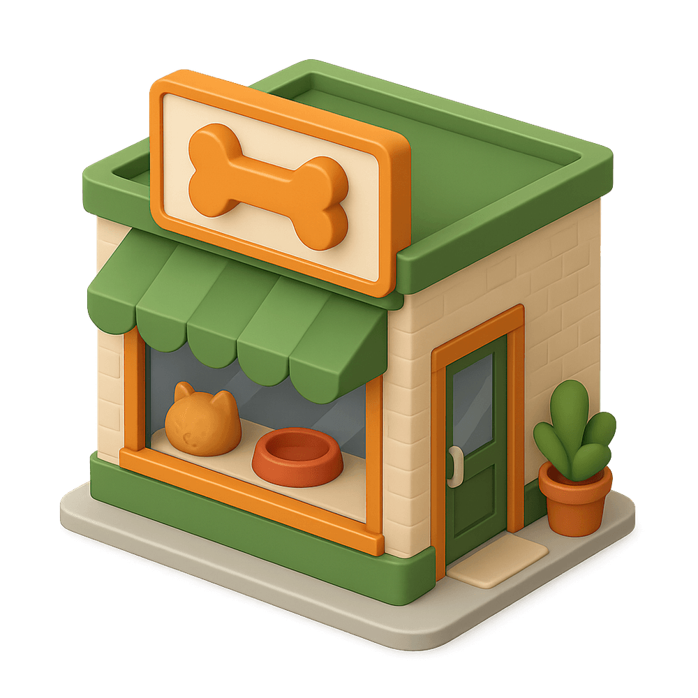 A retail establishment where customers can purchase pets, pet supplies, and related services. Pet stores often offer animals such as fish, birds, reptiles, and small mammals, as well as food, toys, and accessories for pets.