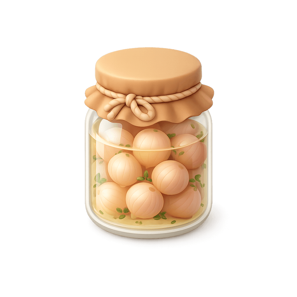 Pickled onions are small onions preserved in a vinegar or brine solution, often enjoyed as a tangy snack, condiment, or side dish. They are popular in various cuisines and add a zesty crunch to meals.