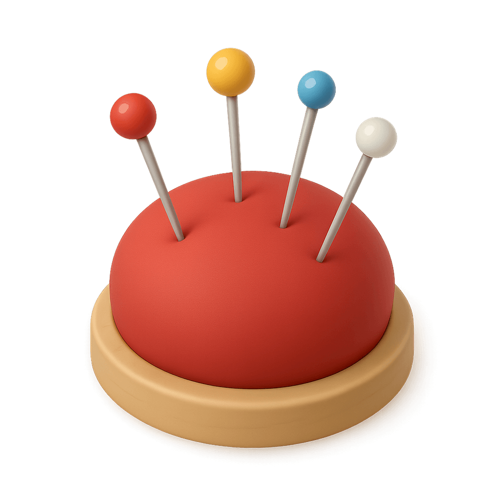 A pin cushion is a small, soft object used to safely store and organize sewing pins and needles, keeping them easily accessible for sewing or craft projects.