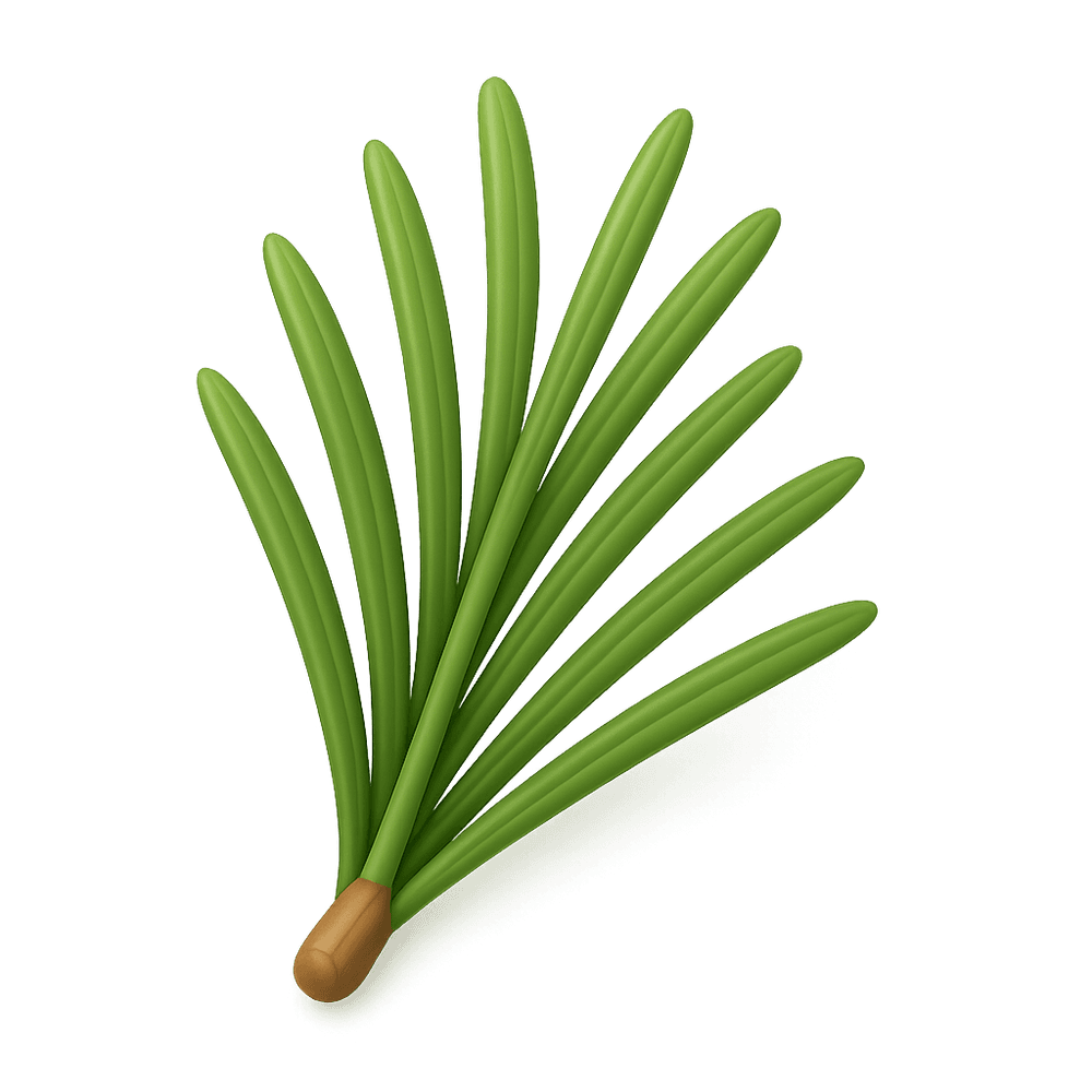A small bundle of slender, green pine needles naturally grouped together, often found on pine trees in forests. Pine needle clusters are characteristic of coniferous trees and play a role in the tree's growth and adaptation to outdoor environments.