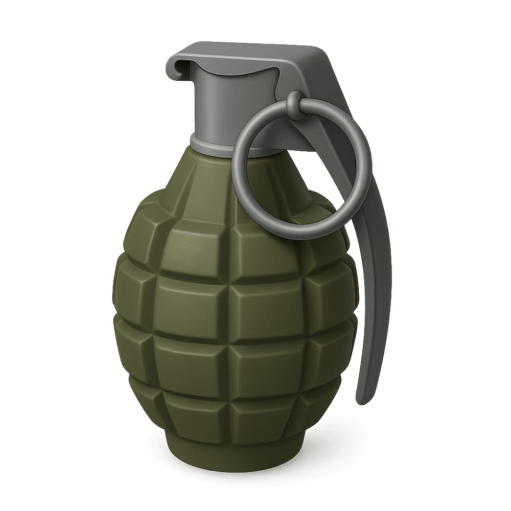 The "Pineapple" hand grenade is a historic fragmentation grenade used primarily during the 20th century, notably in World War II. Its distinctive segmented design resembles a pineapple, which helped disperse shrapnel upon detonation. It is an iconic symbol of military history and technology.