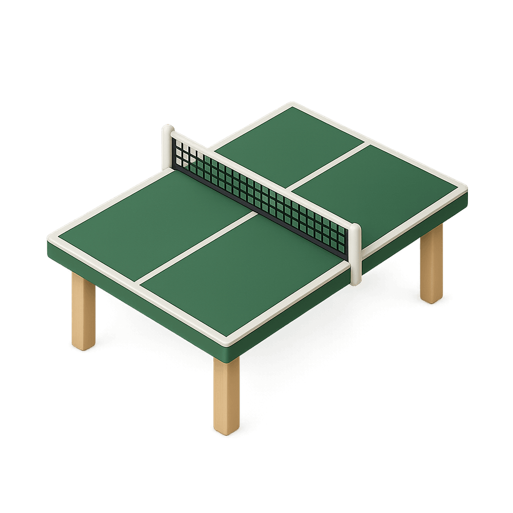 A Ping Pong Table is a rectangular table used for playing table tennis, featuring a net across the middle and designed for indoor or outdoor recreational and competitive play.