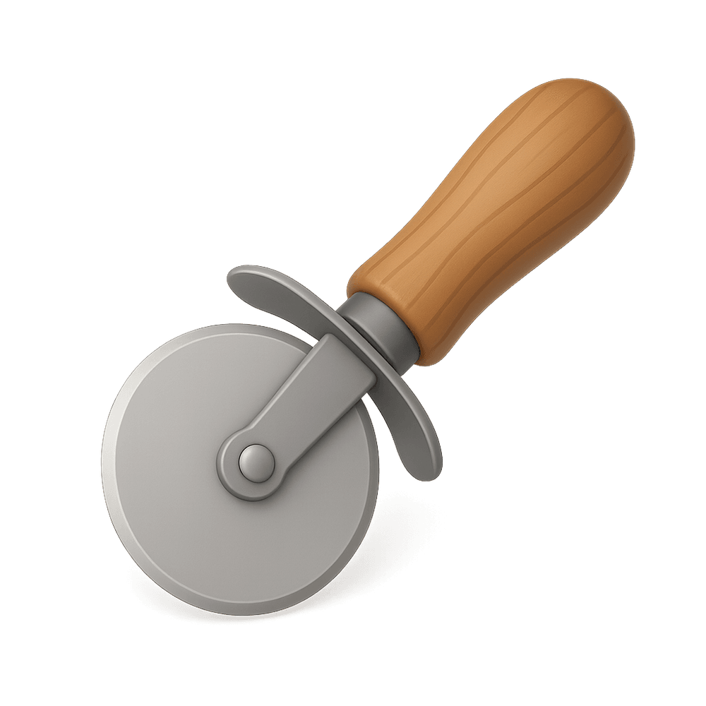 A pizza cutter is a handheld kitchen tool with a circular blade designed to easily slice through pizza and other flat foods. It is commonly used in everyday life for serving pizza at home or in restaurants.