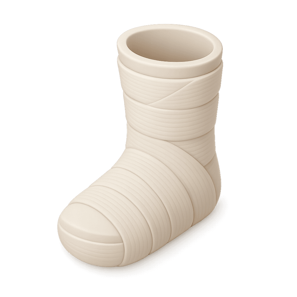 A plaster cast is a protective medical covering made from gauze and plaster of Paris, used to immobilize broken bones or severe sprains during the healing process. It provides support and protection to the injured area, ensuring proper alignment and recovery.
