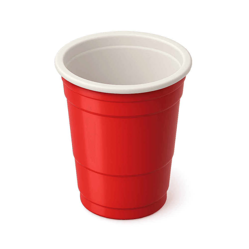 A lightweight, disposable container made from plastic, commonly used for serving drinks at parties, picnics, and everyday occasions. Convenient and affordable, but often single-use.