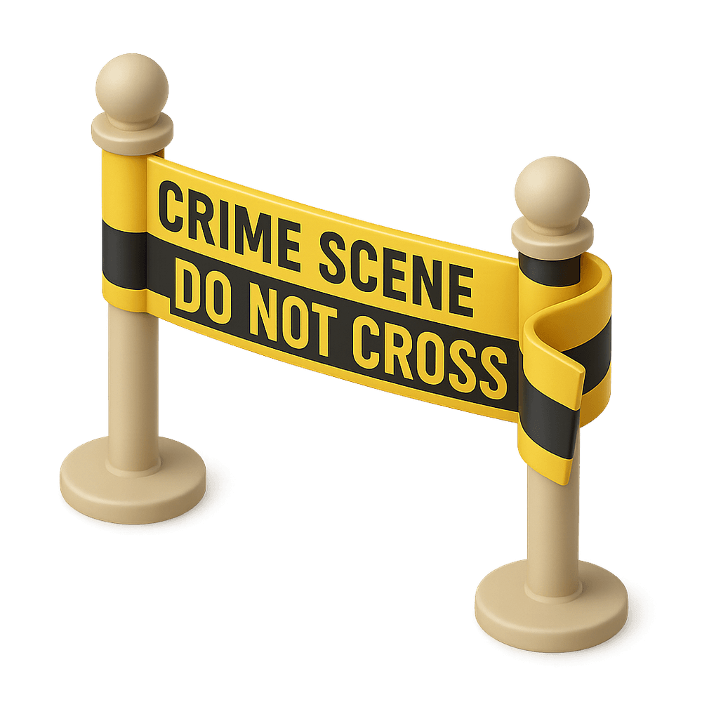 Brightly colored tape, usually marked with 'Police Line Do Not Cross,' used by law enforcement to secure and mark off crime scenes or hazardous areas. It serves as a visual barrier to restrict access and preserve evidence.