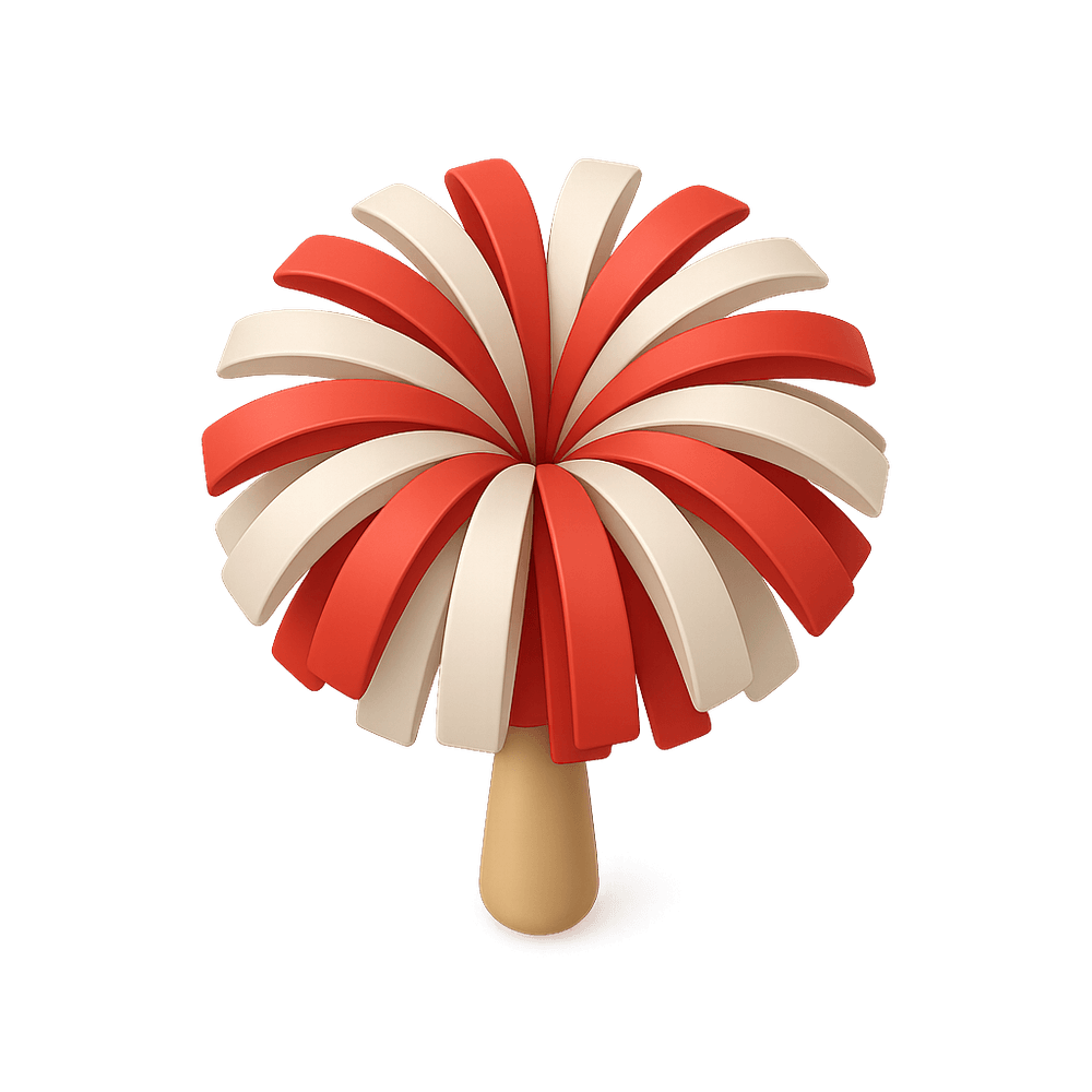 A pom-pom is a fluffy, decorative ball made of fabric or plastic strands, commonly used by cheerleaders to enhance routines and energize crowds at sports events.