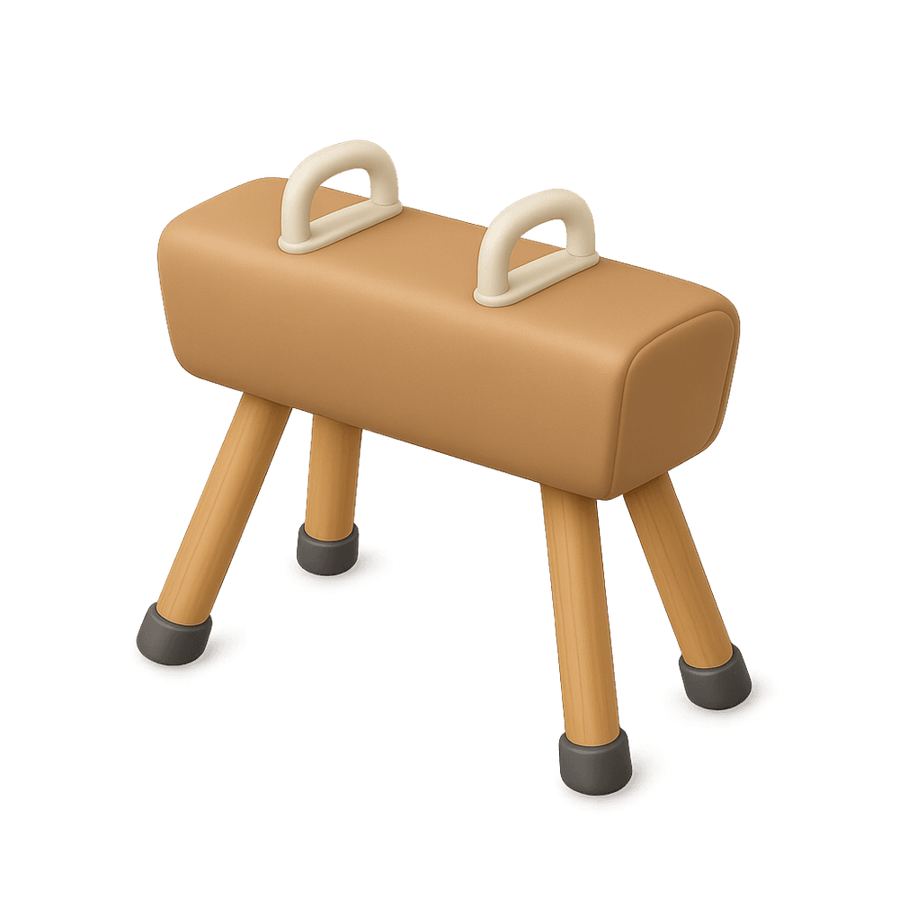 A pommel horse is a gymnastics apparatus featuring a padded, rectangular body with two handles (pommels) on top, used by athletes to perform routines involving swings, circles, and other acrobatic movements. It is a staple in men's artistic gymnastics competitions.