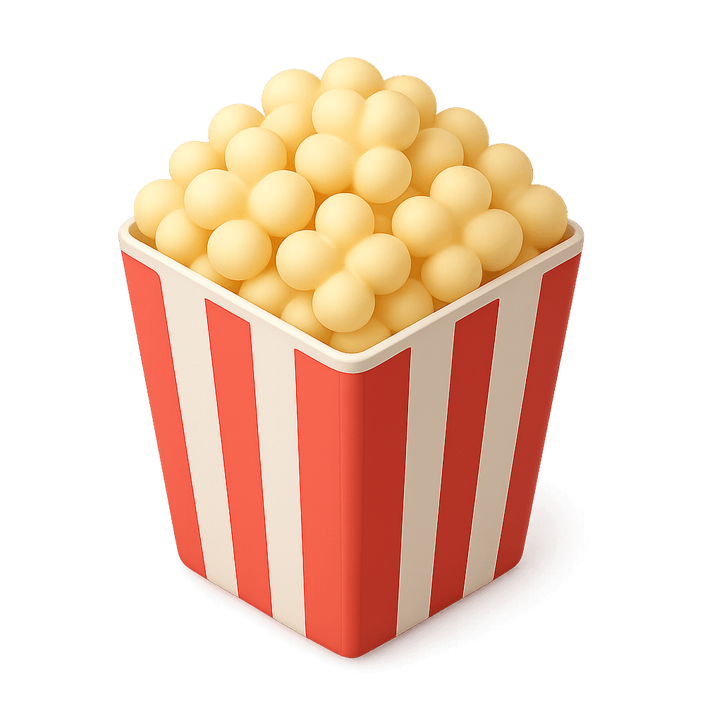 Popcorn is a light, airy snack made by heating kernels of corn until they pop. Popular at movie theaters and events, it can be enjoyed plain or with various seasonings.