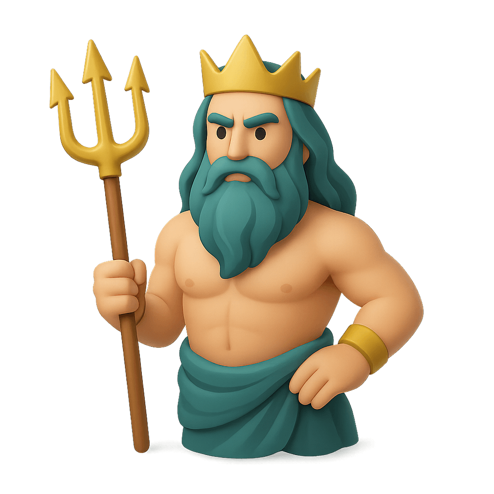 Poseidon is the ancient Greek god of the sea, earthquakes, and horses, often depicted wielding a trident and commanding the oceans. A powerful figure in mythology, he is known for his tempestuous nature and influence over aquatic realms.
