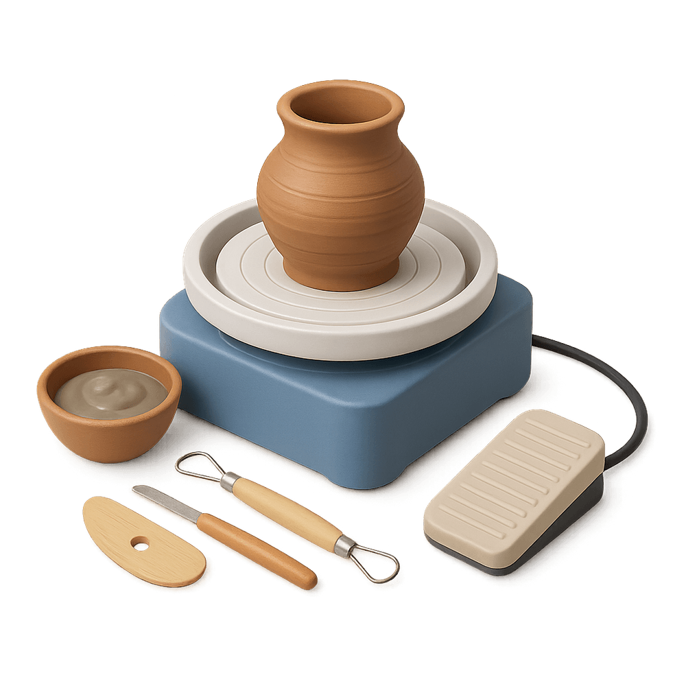 A Pottery Wheel Kit is perfect for beginners and hobbyists interested in creating their own ceramic art. The kit typically includes a compact electric pottery wheel, a set of basic sculpting tools, and a starter pack of clay. It allows users to shape, mold, and design pottery pieces such as bowls, mugs, and vases from the comfort of their home.