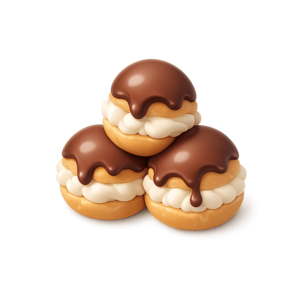 A profiterole is a delicate French pastry made from choux dough, filled with whipped cream, custard, or ice cream, and often topped with chocolate sauce. It is a popular dessert served at celebrations and special occasions.