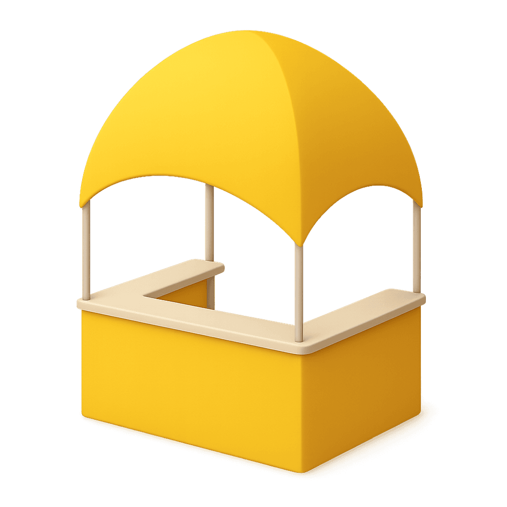 A portable, branded shelter used at events for promotional activities, providing shade and a designated space for marketing or information distribution.