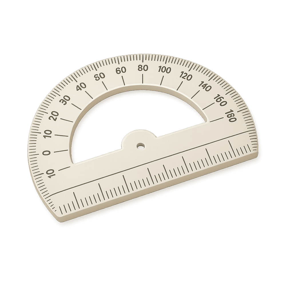 A protractor is a measuring instrument, typically made of transparent plastic or glass, used to measure angles in degrees. It is commonly used in geometry, engineering, and science for precise angle measurements and constructions.