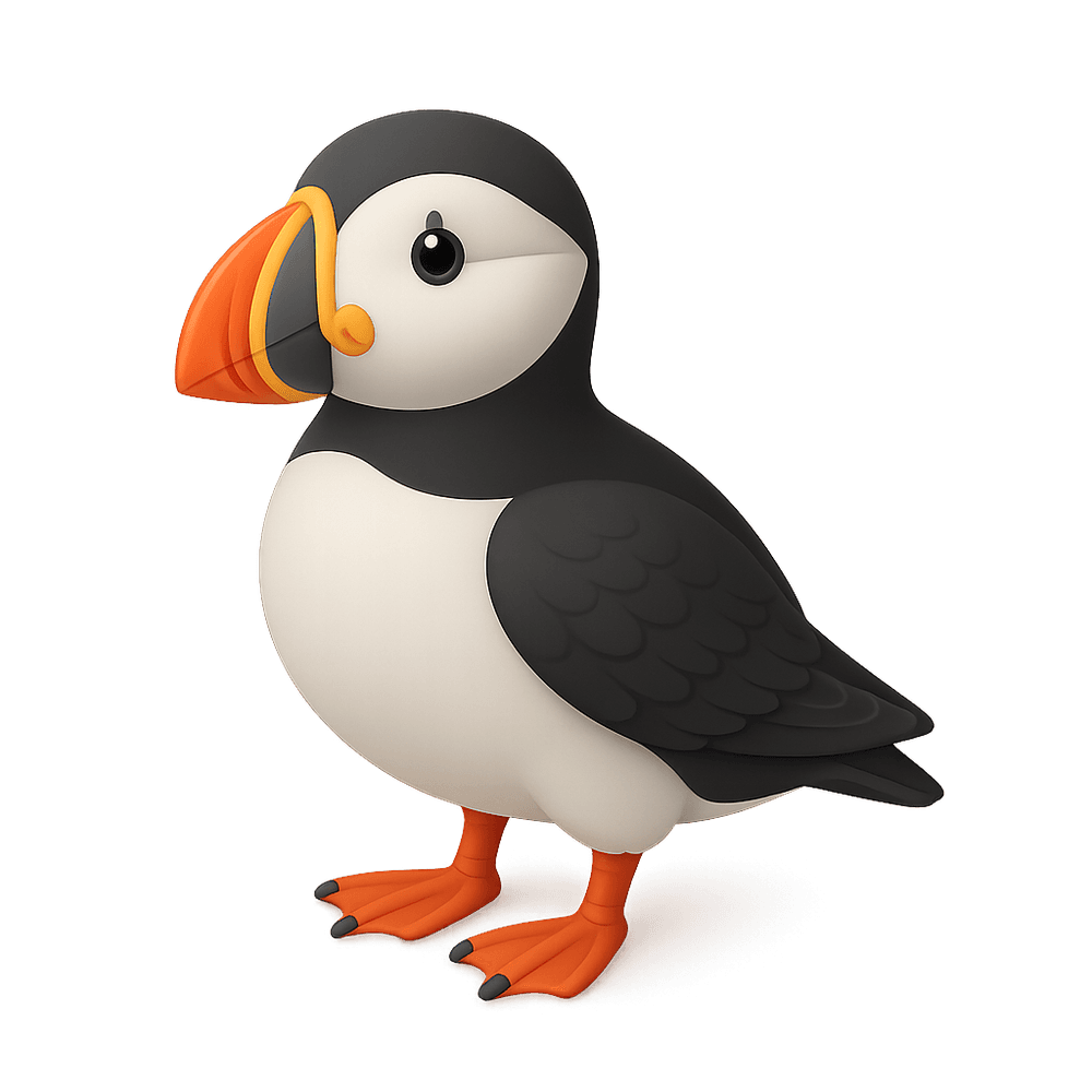 A puffin is a small, colorful seabird known for its striking black and white plumage, bright orange beak, and excellent swimming ability. Puffins are found in the North Atlantic and are famous for their unique appearance and nesting habits on coastal cliffs.