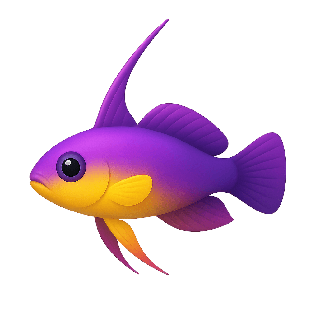 The Purple Firefish is a small, vibrant saltwater fish known for its striking purple and yellow coloration and elongated dorsal fin. Native to coral reefs in the Indo-Pacific, it is popular in home aquariums for its peaceful nature and unique appearance.