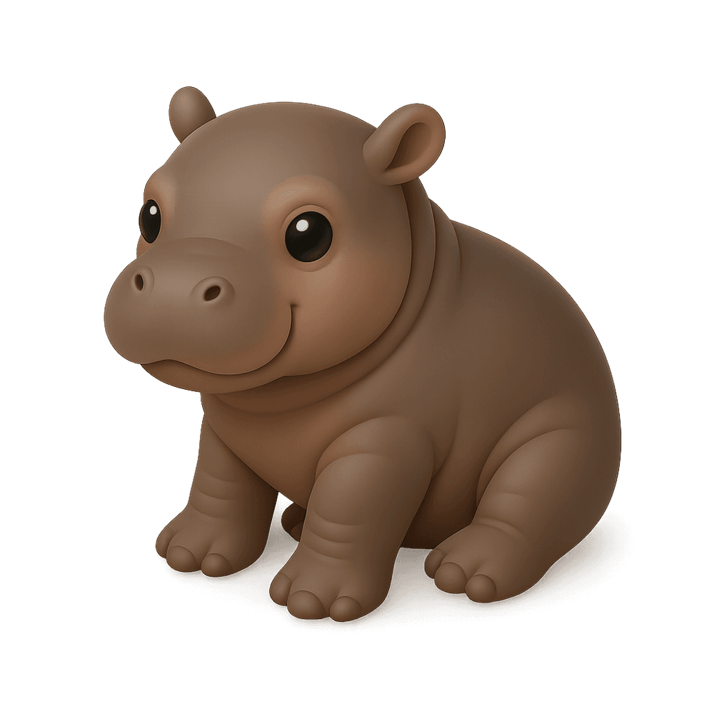A young pygmy hippo, smaller and more reclusive than its common cousin, native to West African forests and swamps. Known for its semi-aquatic lifestyle and endangered status.