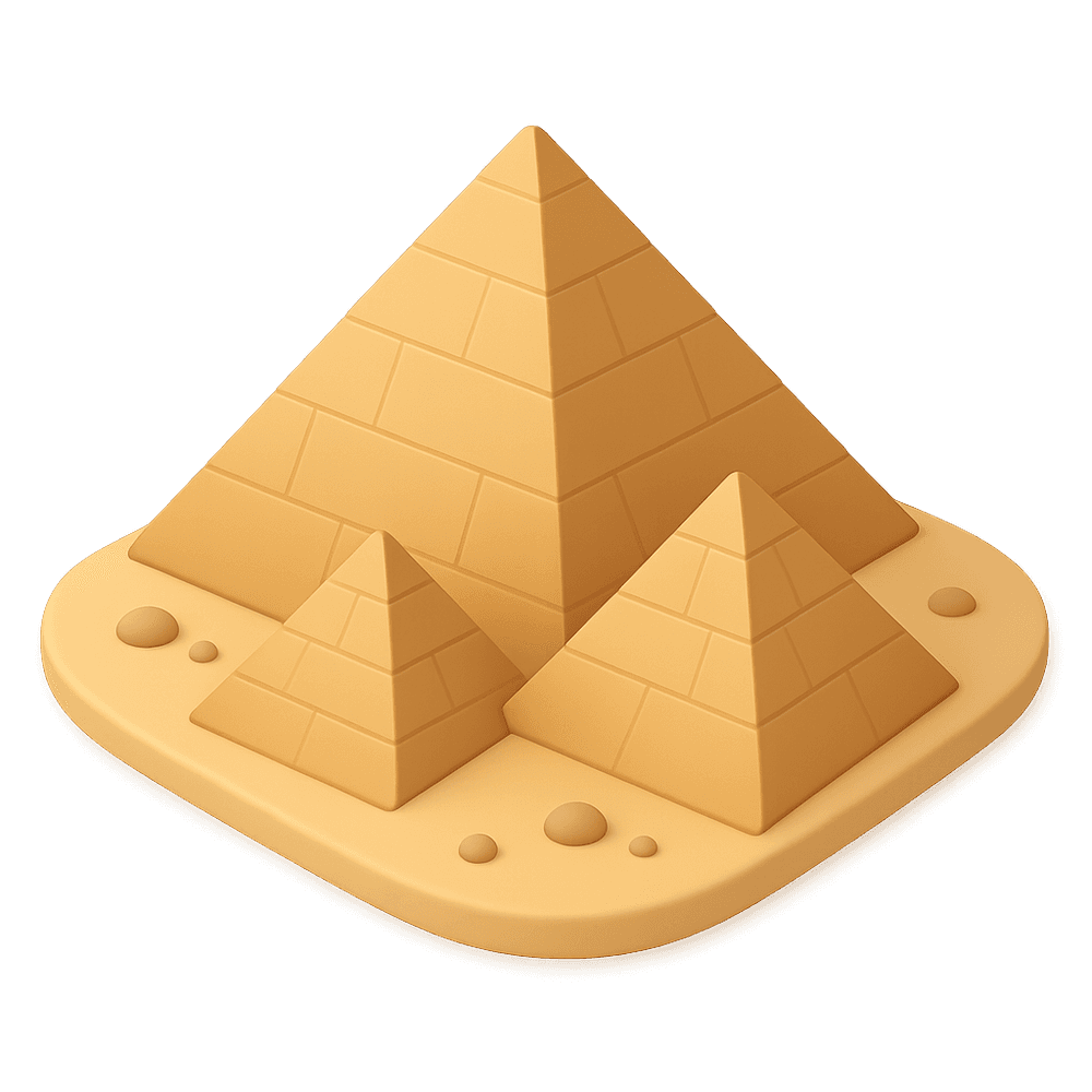 A pyramid is a monumental structure with a square or triangular base and sloping sides that meet at a point at the top. Most famously built in ancient Egypt, pyramids served as tombs for pharaohs and are iconic symbols of ancient architecture and engineering.