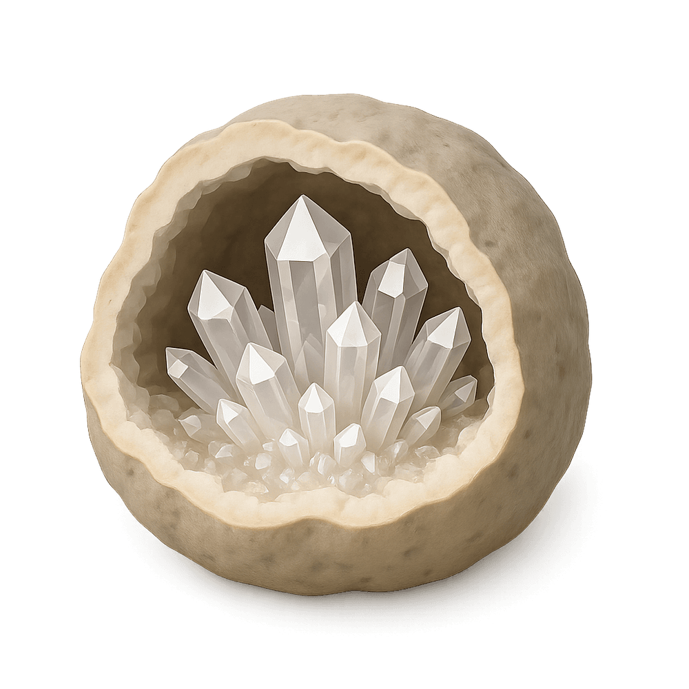 A quartz geode is a hollow, spherical rock formation lined with sparkling quartz crystals inside. These natural wonders are often found in volcanic or sedimentary rocks and are prized for their beauty and unique crystal structures.