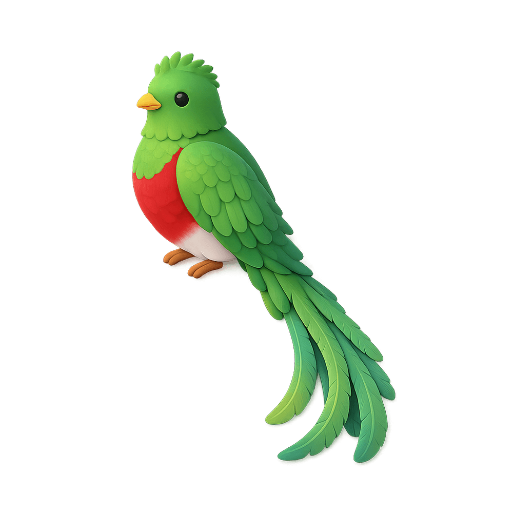 The quetzal is a vibrantly colored bird native to Central America, known for its striking green and red plumage and long tail feathers. Revered in ancient Mesoamerican cultures, it inhabits cloud forests and is a symbol of freedom and beauty.