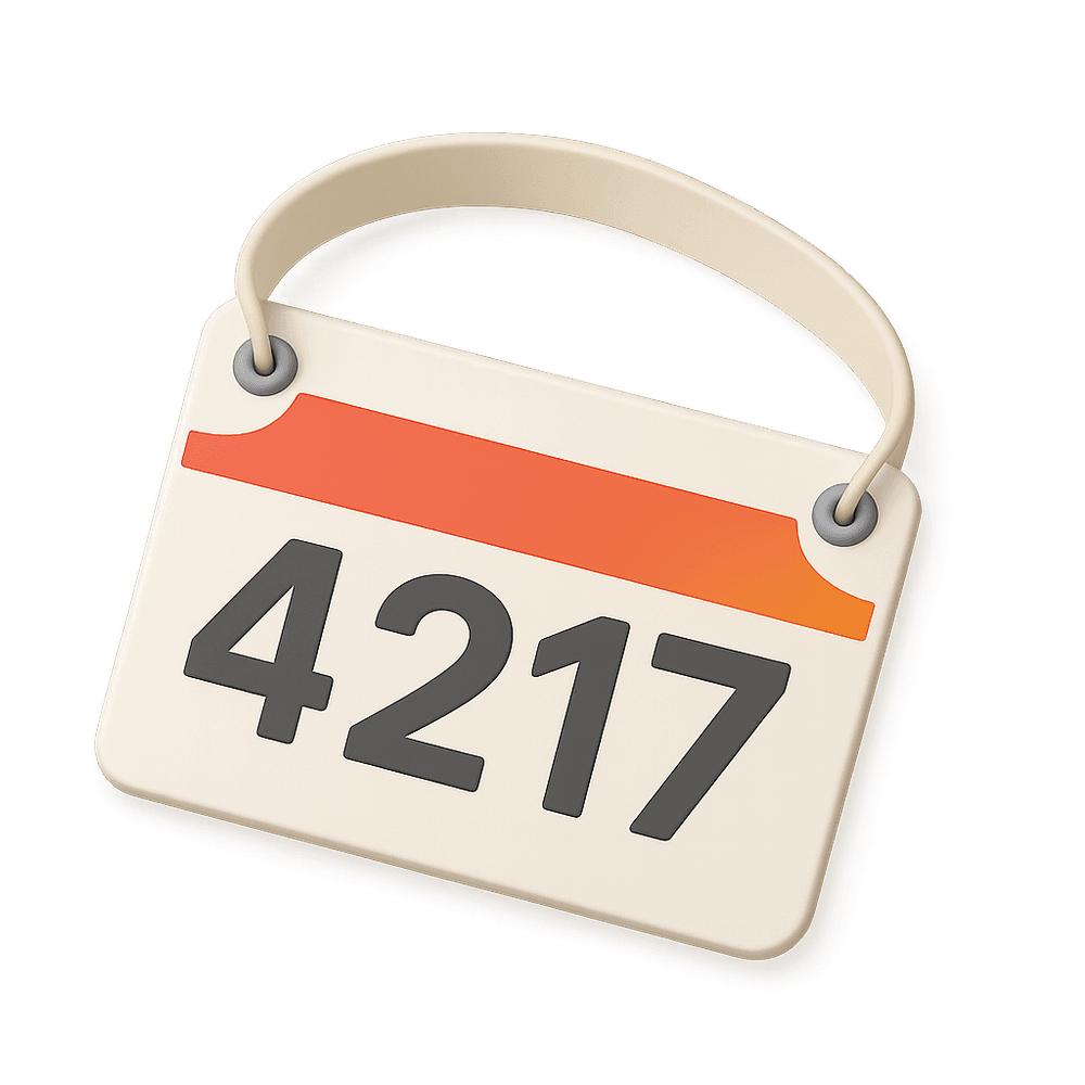 A race bib is a numbered piece of paper or fabric worn by participants in sporting events, such as marathons or cycling races, for identification and tracking purposes.