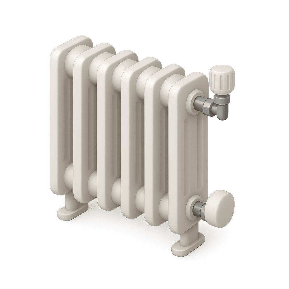 A radiator is a household appliance designed to transfer heat to a room, providing warmth and comfort during cold weather. It typically uses hot water or steam to radiate heat efficiently.