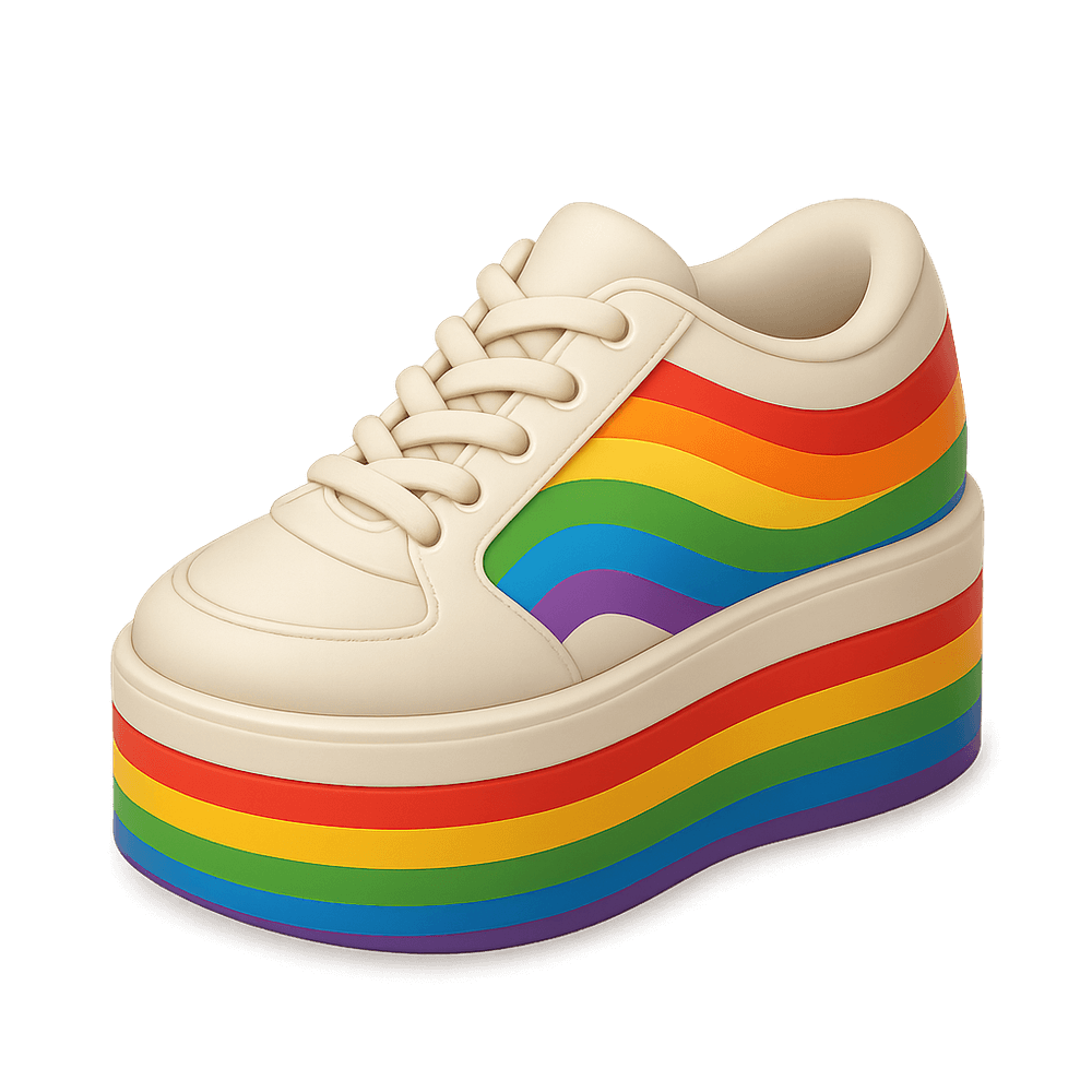 Bold and colorful platform sneakers featuring a vibrant rainbow design. These eye-catching shoes add a playful and trendy touch to any outfit, perfect for making a statement in casual or streetwear fashion.