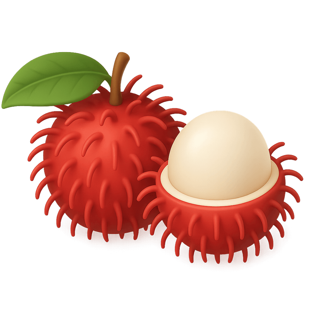 Rambutan is a tropical fruit native to Southeast Asia, known for its hairy red shell and sweet, juicy flesh. It is rich in vitamins and often enjoyed fresh or in desserts.
